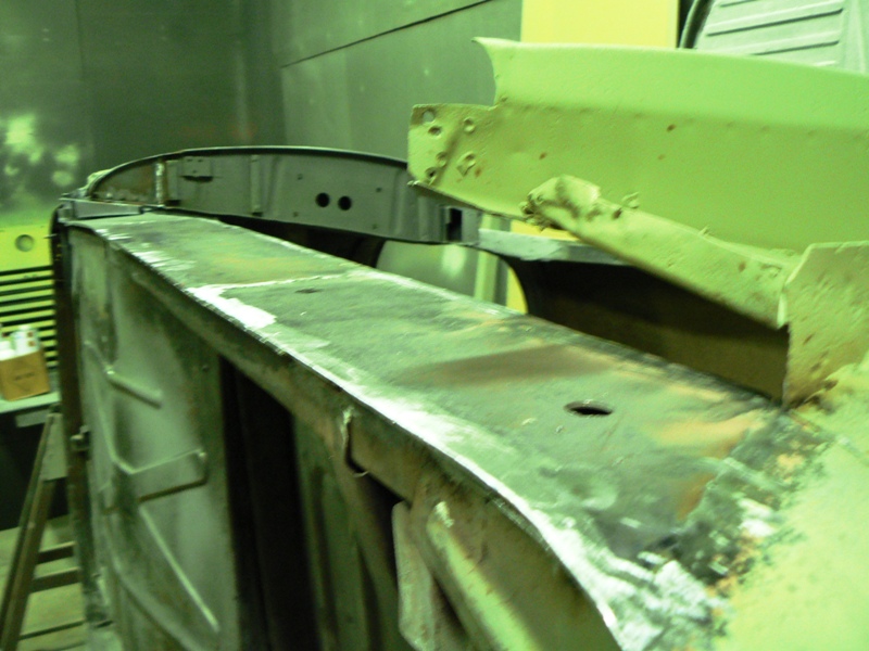 Nous n'avons sablé qu'une partie de la voiture. En effet nous avons dû dégager très fort le longeron droit pour retirer tout ce qui était attaqué. La voiture est déforcée. Il faut d'abord reconstruire ce côté là avant de la bouger.